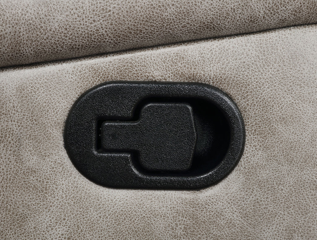 A motion sofa made for effortless downtime. A drop-down center table brings order to movie night with a pop-up power hub and USB charging, while stainless steel cup holders keep drinks steady. Manual reclining seats glide back smoothly, and a wall-hugger design preserves floor space. Pocket-coil cushions topped with memory foam deliver supportive comfort, wrapped in easy-care leatherette with contrast stitching. Built on a durable mix of foam, engineered wood, and heavy gauge metal, it’s relaxation ready. Key Features: • Reclining sofa in taupe faux leather with contrast stitching and padded arms • Manual reclining seats provide smooth operation for everyday relaxation • Wall-hugger design allows full recline while conserving valuable space • Drop-down center table adds pop-up power hub with two AC and two USB ports • Two stainless steel cup holders secure beverages within easy reach • Pocket-coil seats with memory foam deliver supportive, cushioned comfort