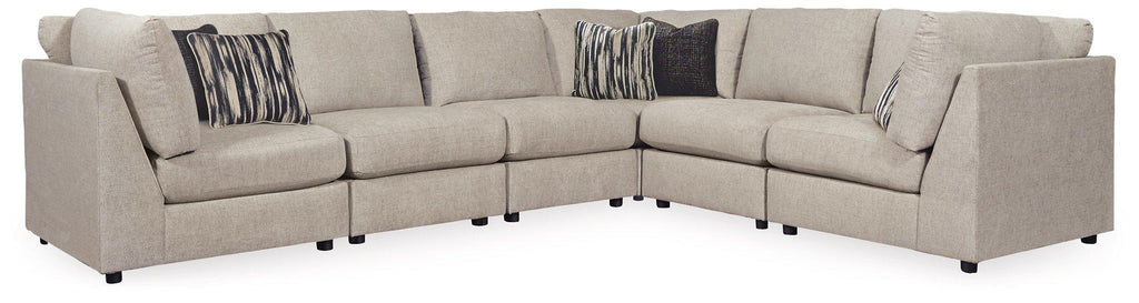 With its casual-contemporary aesthetic and modular design, the Kellway sectional makes way for high style and indulgent comfort. Rest assured, the thickly cushioned storage console includes not only a pair of cup holders, but also a USB port to keep you powered up while you unplug. Wedge-cut armrests are right on point for those who fancy a clean, modern look. Plush-to-the-touch chenille-feel upholstery in bisque beige is pure delight.